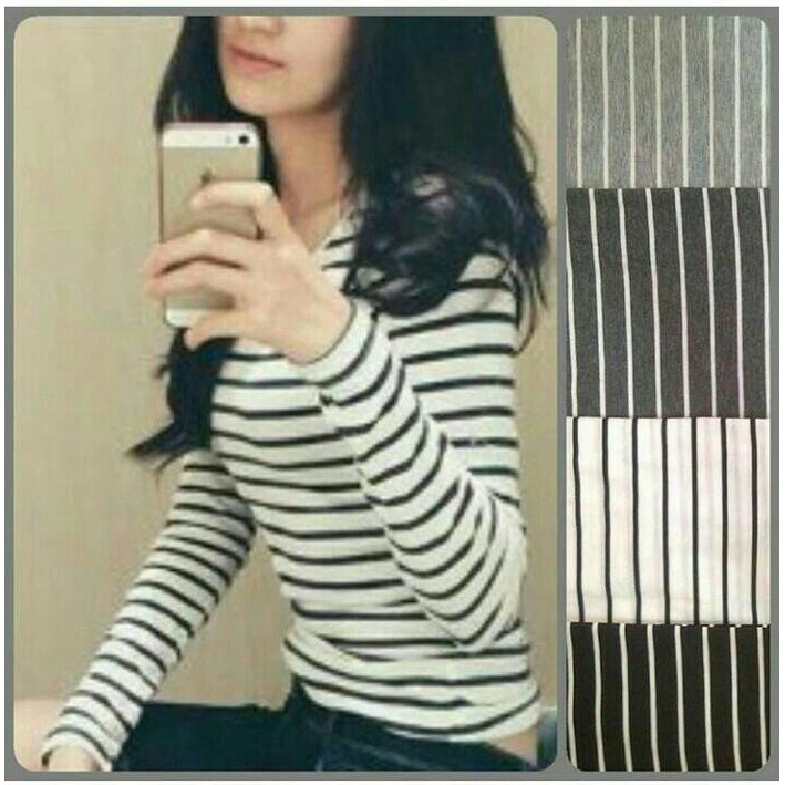 Kaos panjang strip/stripe/belang/garis hitam putih sz l. Baju kemeja wanita lengan panjang motif belang cantik terbaru.